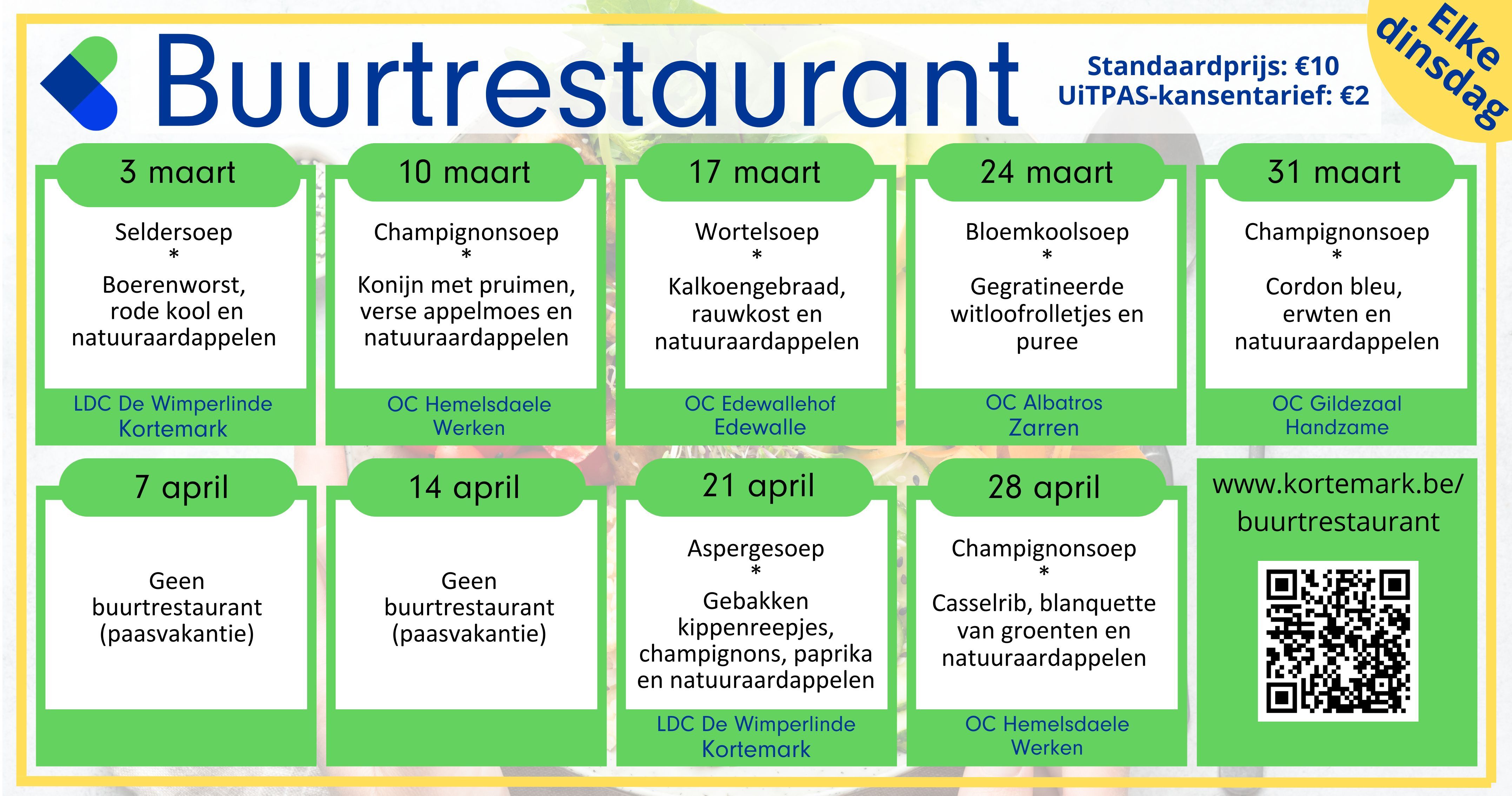 Inschrijven voor het buurtrestaurant kan telkens tot de voorafgaande donderdagmiddag of tot we volzet zijn: